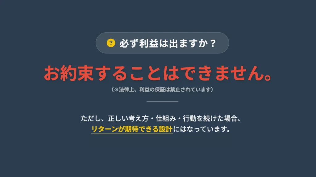 なぜ、全くのお金の勉強が未経験の人でも、 迷わずに成果を残せると思いますか?