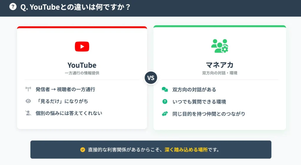 あなたの悩みは、誰かの悩み。 同じ目標を持つ仲間と一緒に解決して、前に進む仕組みがあります。