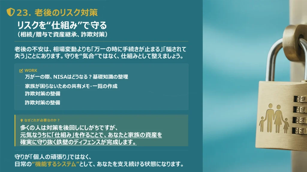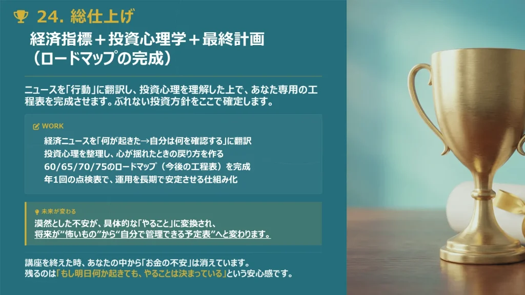 24回の講義は、単なる「お金や投資の勉強」ではありません。