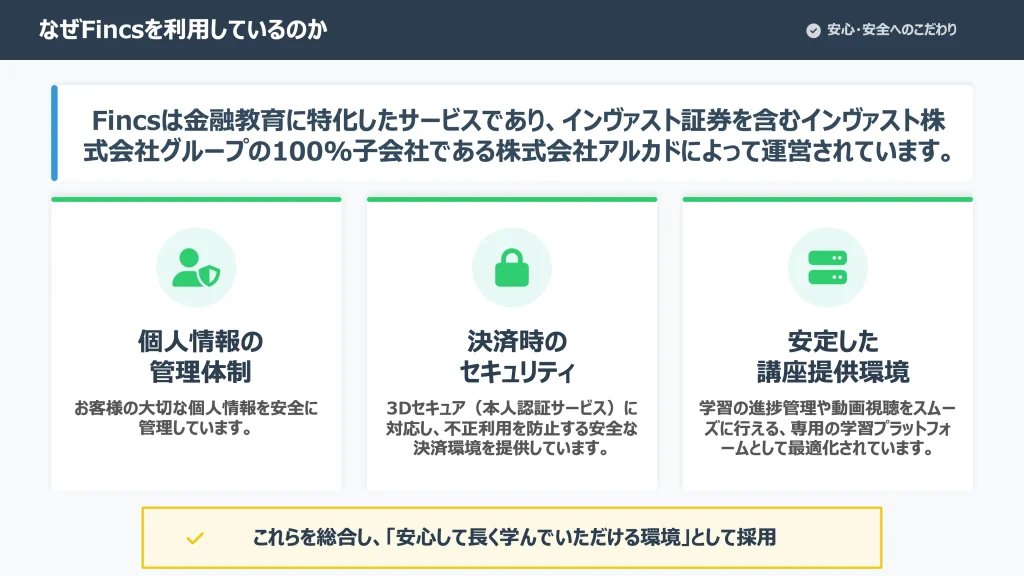 受講生専用サイトFincsアカウント